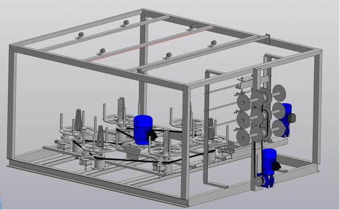• Эффективность данного скрутчика-перемотчика позволяет непрерывно снабжать катушками до 3х линий производства композитной арматуры.