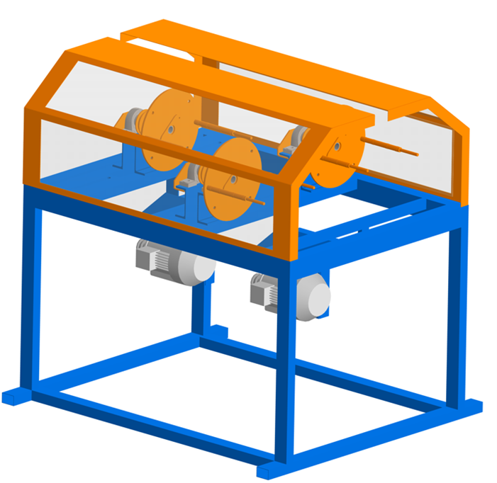2. Узел спиральной намотки формирующей нити (стекловолокно) 3х прутковый для арматуры с периодическим профилем. Использование облегченных катушек для намотки периодического профиля позволяет увеличить производительность за счет снижения нагрузки на устройство намотки и увеличения скорости вращения.